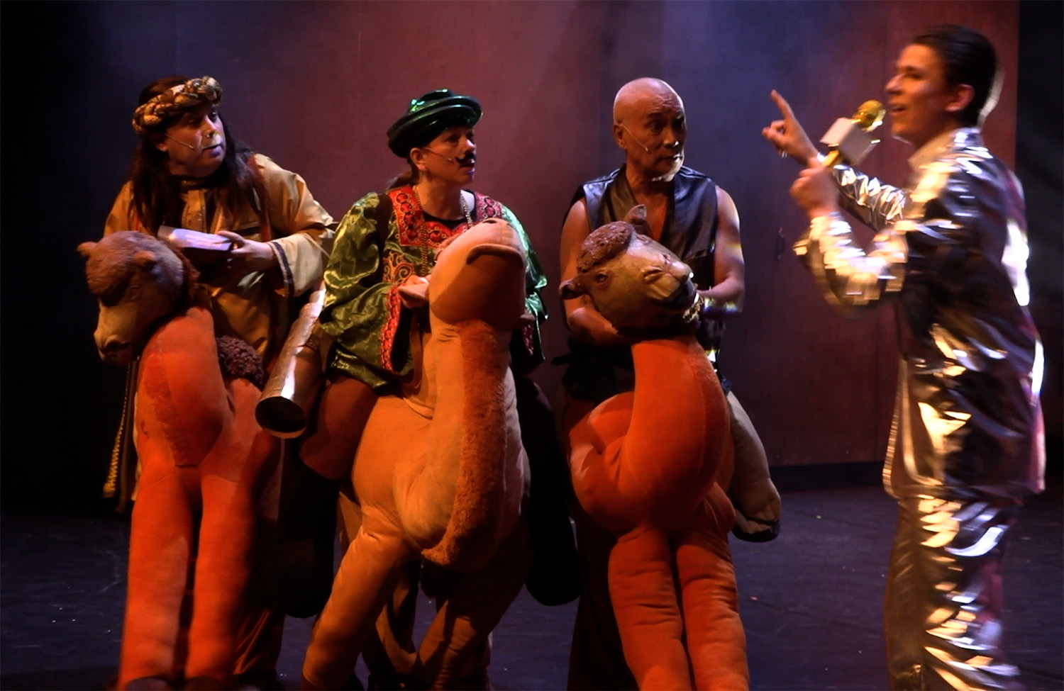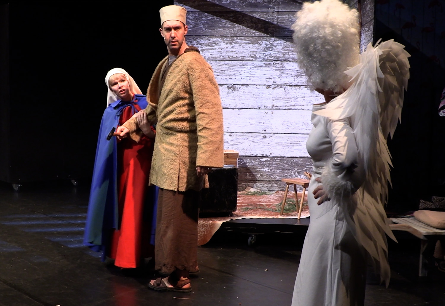 De herder is de tel kwijt, de koningen zijn compleet verdwaald, een sprekende os met teveel praatjes, een ezel die goudstukken poept, een engel die repeteert voor haar eigen kerstshow en de louche herberg heeft een paar sterren te veel. En als klap op de vuurpijl wordt iedereen opgeschrikt door een mysterieuze moord.